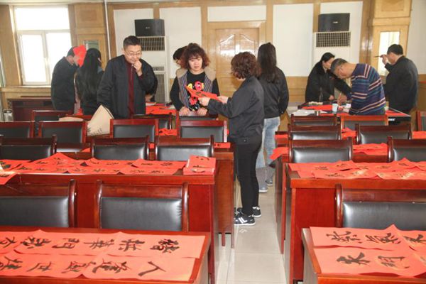 火紅的對(duì)聯(lián),淡淡的墨香,一副副工整喜氣的春聯(lián)擺滿了大廳。春聯(lián)內(nèi)容既有喜迎豬年辭舊迎新的美好愿景,也有歌頌黨恩、大展宏圖的勵(lì)志詞句,一幅幅精彩的書法作品,一句句吉祥如意的春聯(lián),不僅讓職工目睹了書法家的風(fēng)采,更為即將來(lái)臨的春節(jié)增添了濃濃的喜慶氛圍。機(jī)關(guān)干部職工紛紛前來(lái)領(lǐng)取現(xiàn)場(chǎng)寫好的春聯(lián)、更接受“私人訂制”,現(xiàn)場(chǎng)喜氣洋洋、歡聲笑語(yǔ),不僅送出了新春的祝福更送出了濃厚的年味兒和文化味。